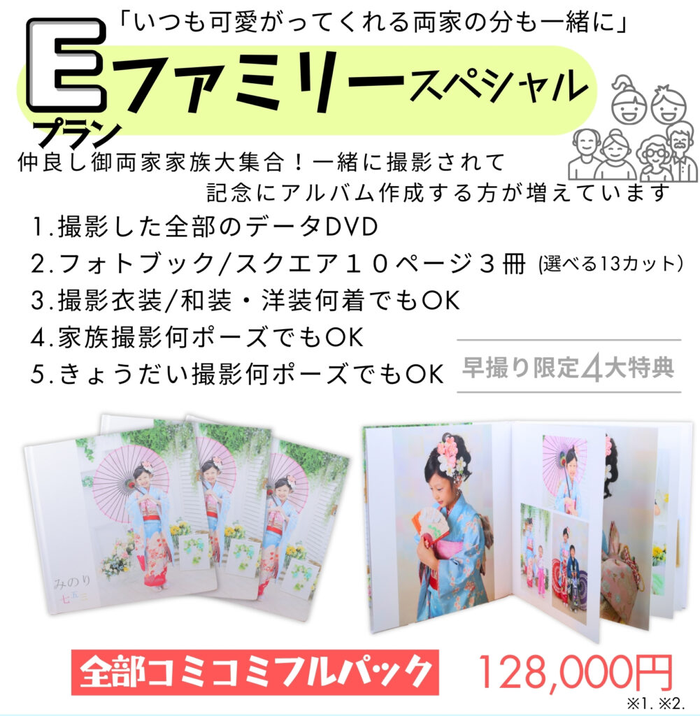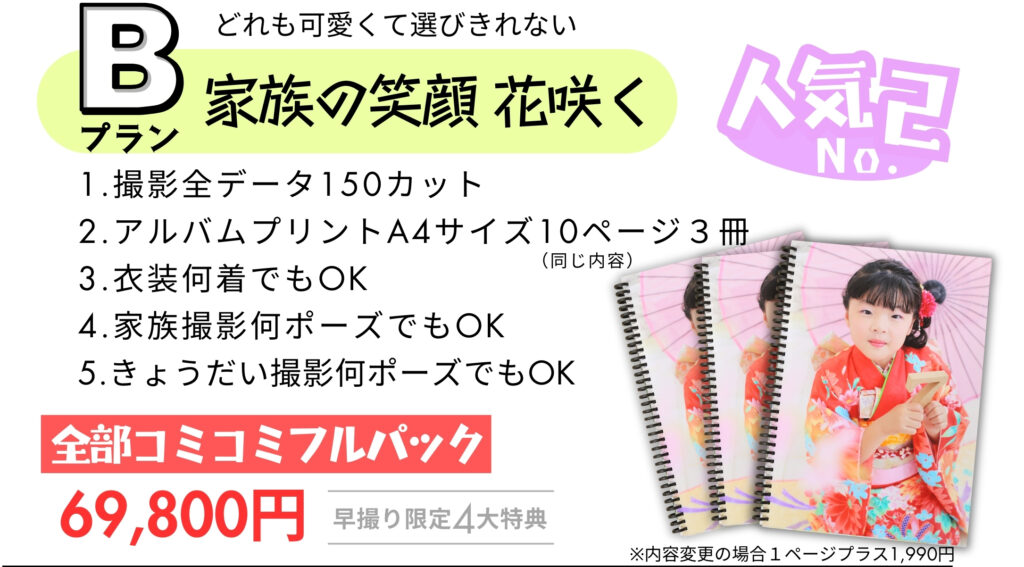 サトカメフォトスタジオの“七五三フルパック”はプラン1つで、