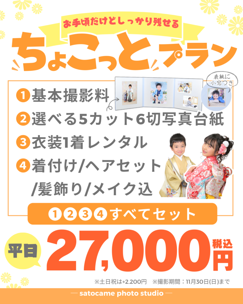 サトカメフォトスタジオでは9月・10月・11月の七五三撮影プランをご用意しています。
