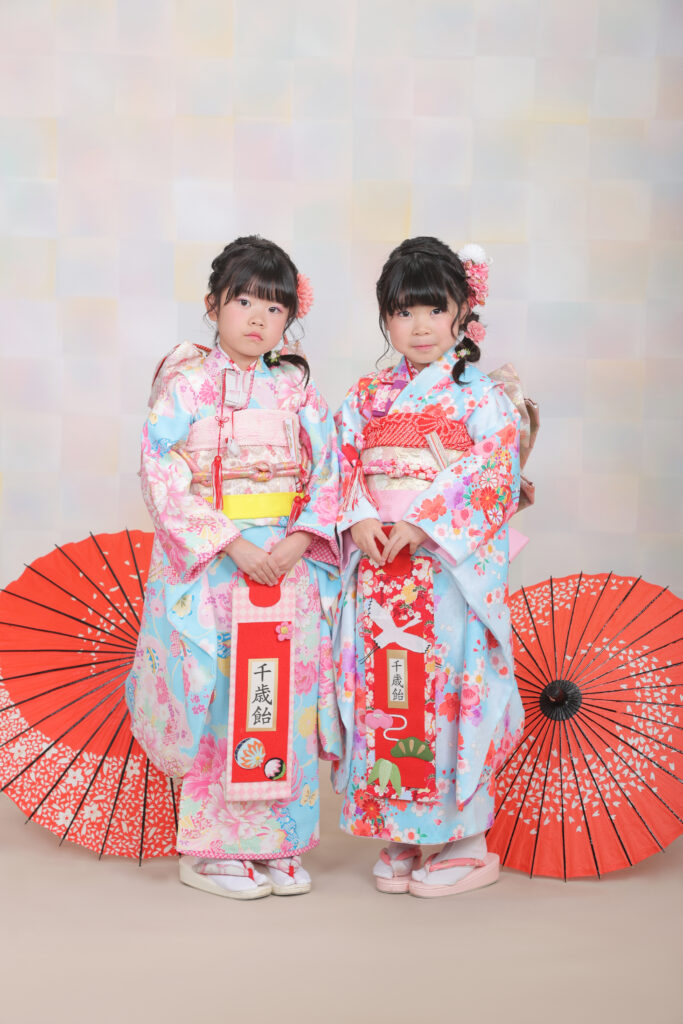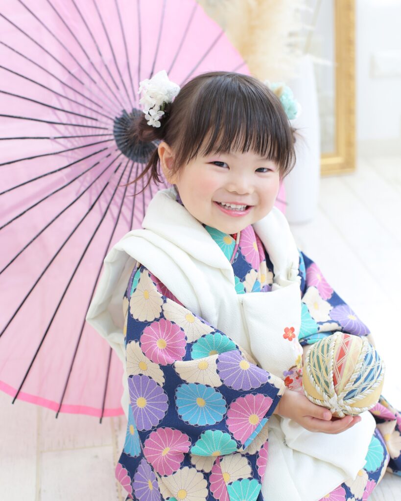 11月15日に神社でお参りするのが一般的ですが、子供の着物姿や家族写真がしっかりと残せるように写真スタジオで記念写真を撮る祝い方も多くなっています。