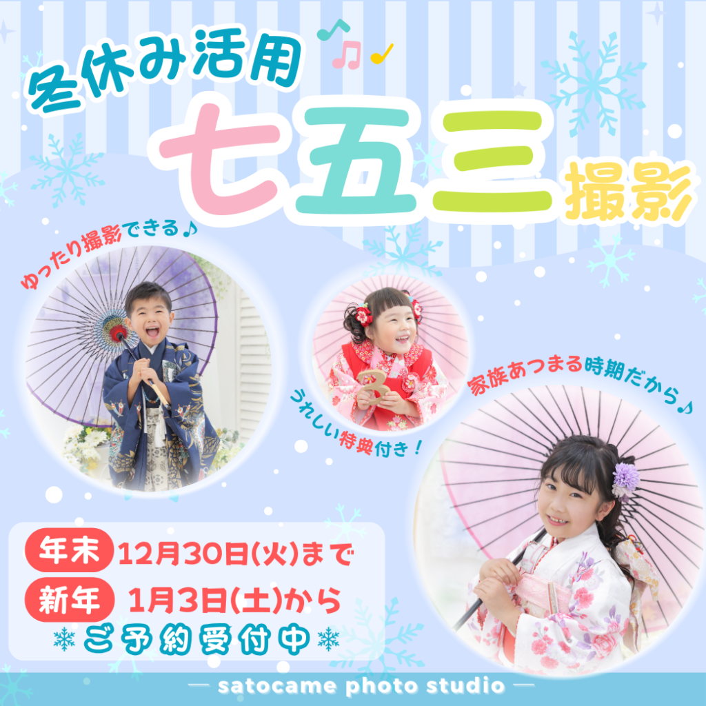 お子さんの冬休み期間をうまく活用して、七五三撮影はいかがでしょうか?