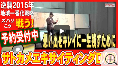 第33回サトカメエキサイティングDVD予約受付中! 「逆襲2015年地域一番化戦略ズバリこう戦う!」 ![]() |