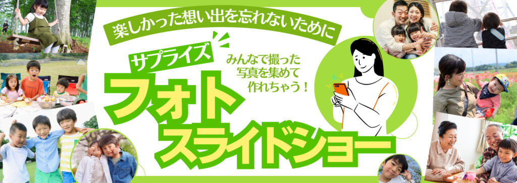 誕生日や七五三のお祝いに・旅行やクラブ活動の記念に…想い出の写真を集めてドキドキ&感動を一緒に振り返ってフォトスライドショー上映会をしませんか?